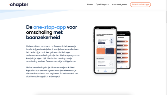 Download je de app? Dan helpt een divers team professionals je vervolgens te ontdekken wat jouw passies en talenten zijn. En ben je eenmaal bij het omscholingstraject belandt? Dan hoef je niet te vrezen voor achterhaalde praktijken: Chapter stelt je in staat om via de app te leren wanneer het jou uitkomt. Dat kan dus ook een kwartiertje per dag zijn, voor als je toch in de trein zit bijvoorbeeld.