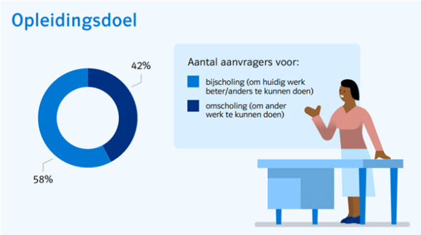 Dan nog een leuk feitje: 58% van de aanvragers geeft aan bijscholing te willen bekostigen van het STAP-budget. Op die manier hopen ze hun huidige werk beter te kunnen doen.