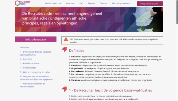Afgelopen week was het opeens zover. Een speciaal daartoe in het leven geroepen commissie presenteerde de Recruitercode. Een gedragscode, is het, die door eigenlijk iedereen die zich met recruitment bezighoudt nageleefd zou moeten worden.